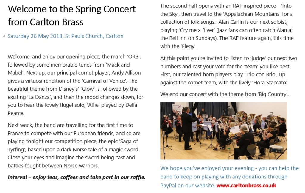 Saturday night saw Carlton Brass put on a fabulous concert at St Paul’s Church in Carlton. We have been wanting to arrange a concert for a while and the church were kind enough to allow us to use their beautiful building.
