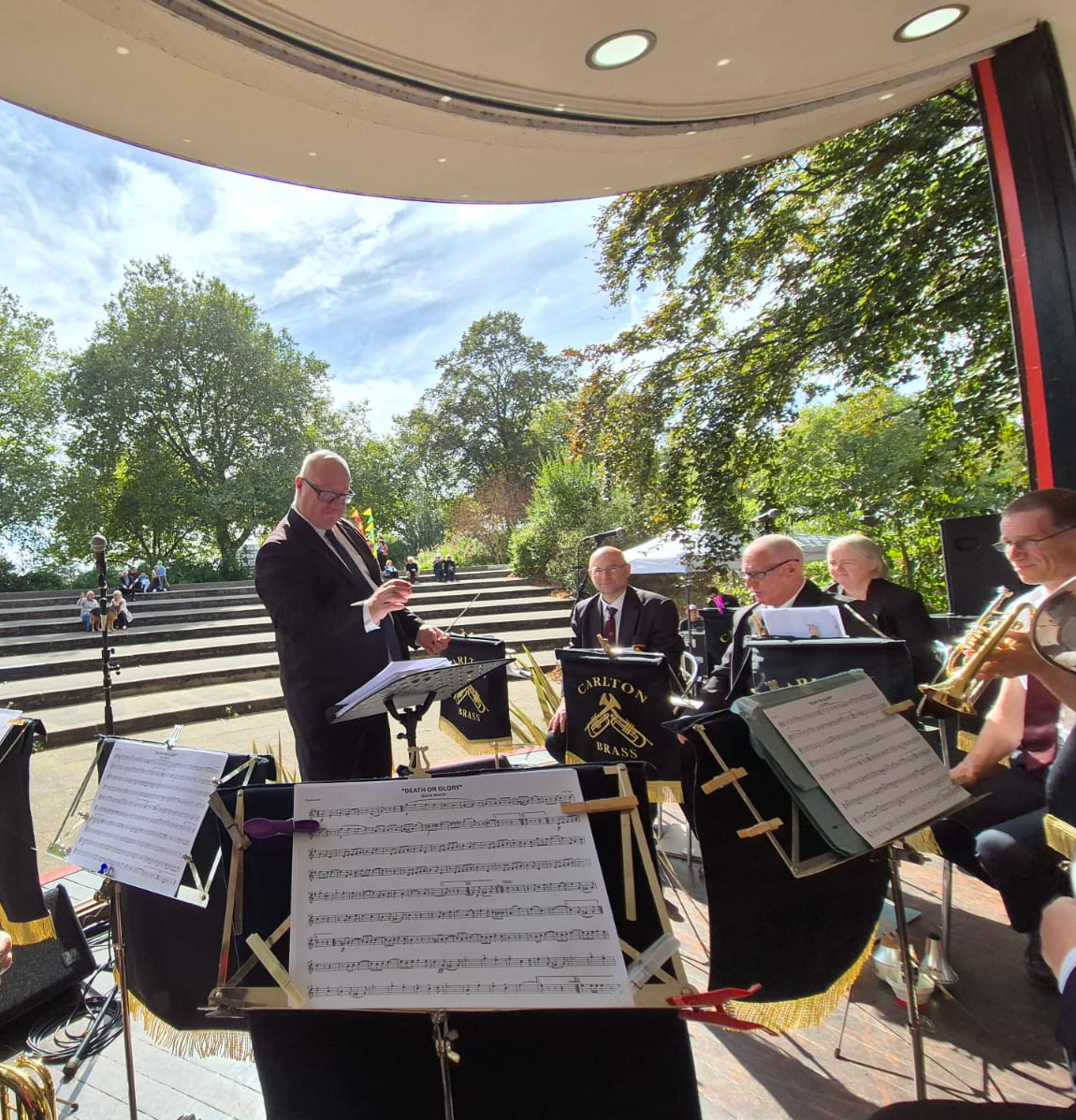 The band enjoyed one last day playing in the sunshine at the ‘Party at the Bandstand’ at the historic art deco bandstand along the embankment near Trent Bridge this Saturday. The event was organised by NonSuch Studios, an independent theatre company, creative producer and arts charity based in Nottingham and the band performed before a mixture of other musical groups throughout the afternoon.