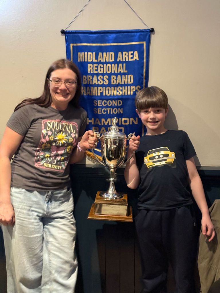 Several players were noted out for praise. In particular the percussion section; Ollie on kit, Sarah on Timps and Rowena and George, aged 9, (pictured below) on tuned percussion were noticed. The adjudicators said ‘the band plays as one very well led by the MD, the percussion add a touch of magic’ ‘ This has such a lovely sense of control and excitement in equal measure and percussion are so effective throughout’